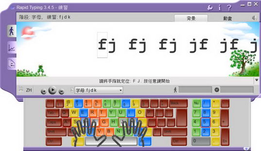 RapidTyping,英文打字學習軟體,內建正統英打學習課程,可以顯示該用哪一根