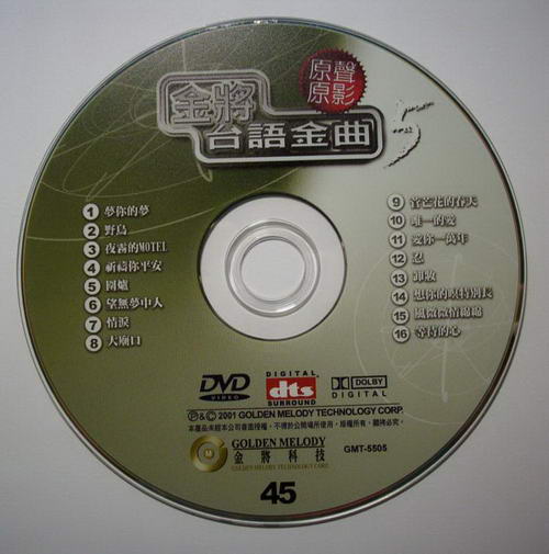 金將台語金曲原聲原影KTV DVD(五)(dvd一片裝)