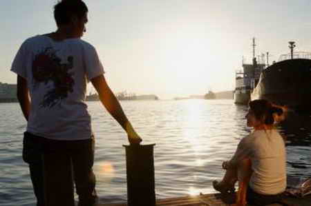 場景在愛河邊。她是日本人,他是台灣人。